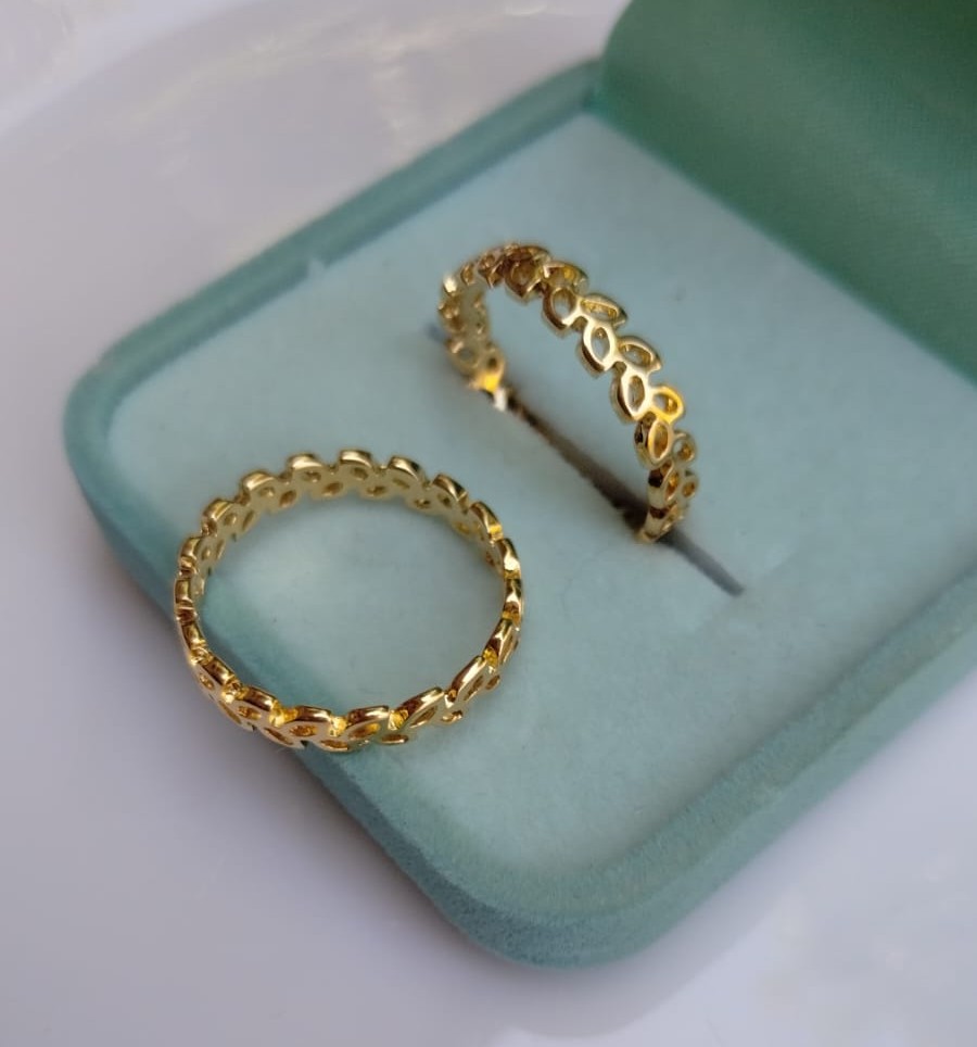 Anel folheado a ouro 18k, aro em formato de folhinhas vazadas.