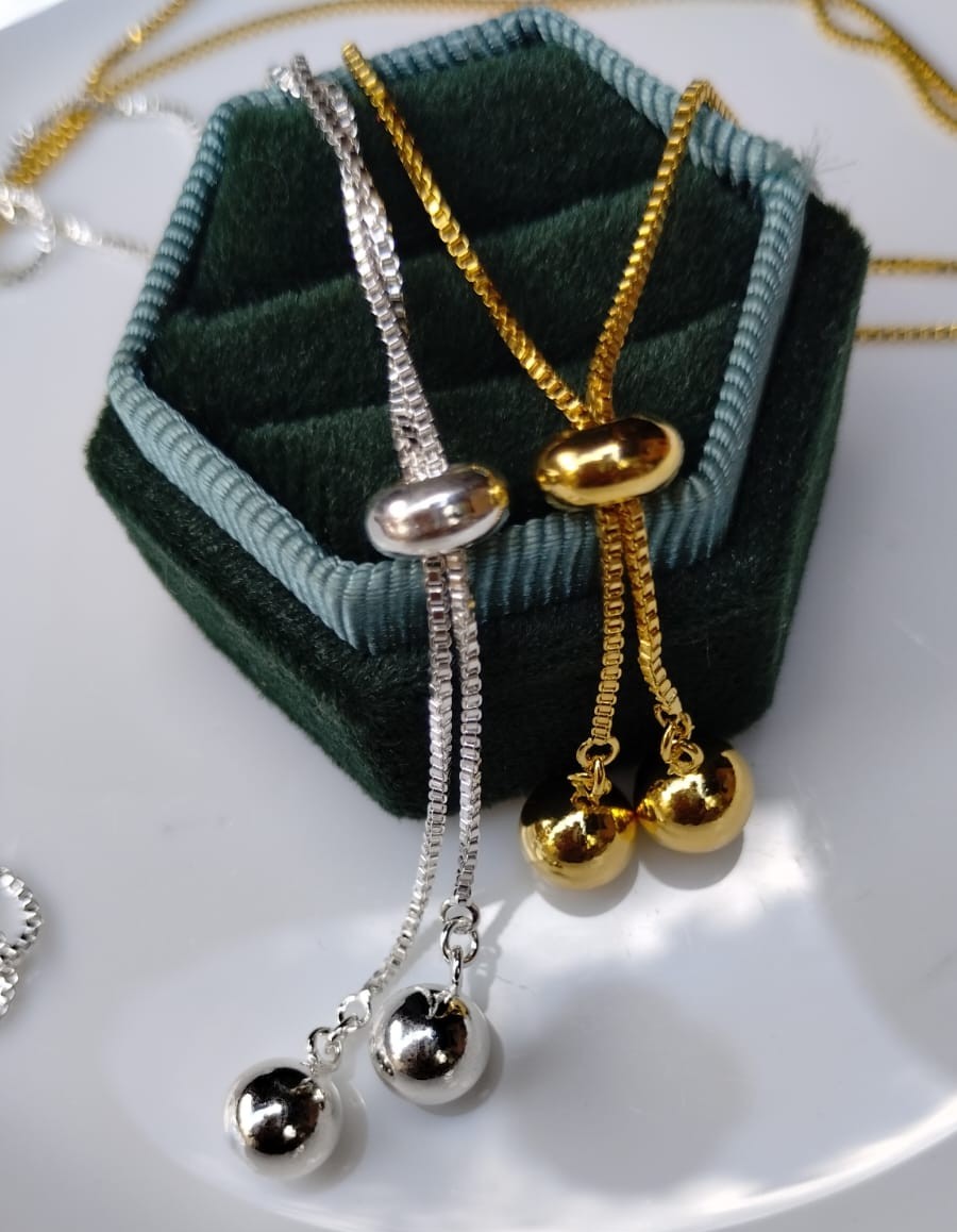 Conjunto gravatinha de bolinhas banhadas a ouro ou prata.